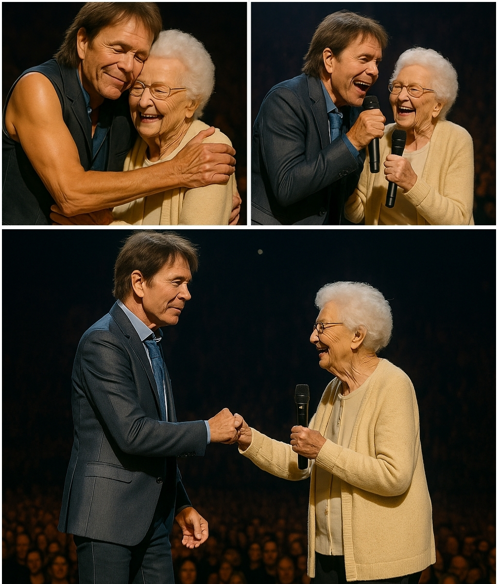 Her fingers trembled slightly as she gripped the mic, the room so silent you could almost hear her breath. “I’ve loved your music since the ’70s,” she said, her voice soft but certain. Then, almost shyly, she began to sing — the melody instantly familiar to anyone who had followed Cliff’s career. The years seemed to melt away as her voice, though aged, carried the warmth and sincerity of someone who had lived with the music for a lifetime.